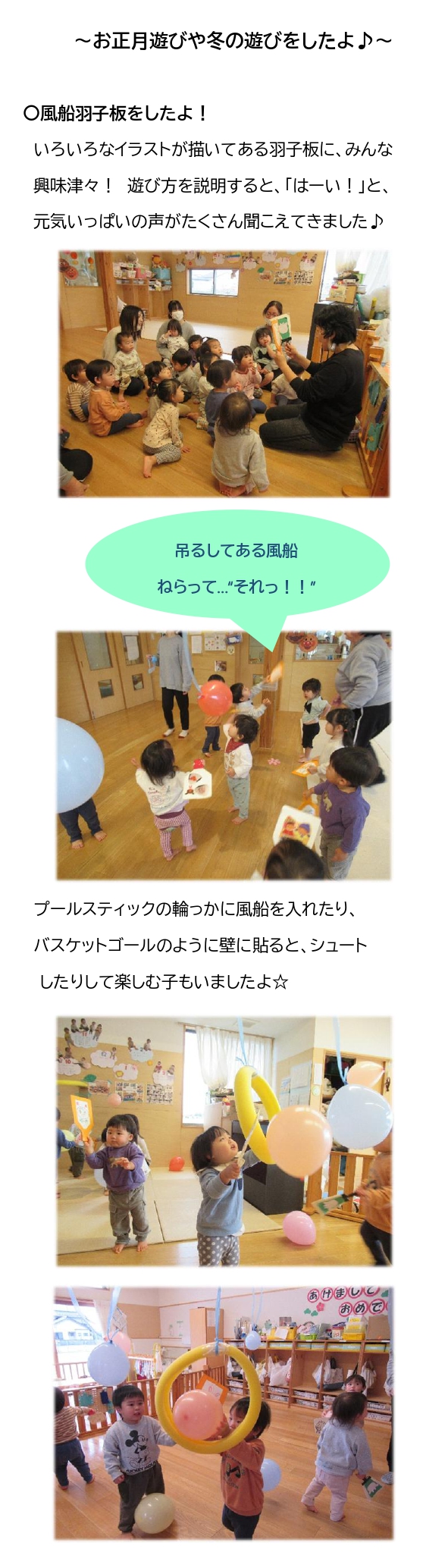 1月 りす組 お正月遊びや冬の遊びをしたよ!